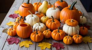 I think the foundation of your arrangement starts with the pumpkin itself. Go for pumpkins with a flat base so they donโ€™t tip over. White pumpkins add elegance, traditional orange gives rustic charm, and mini pumpkins are perfect for small accents.