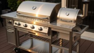 For barbecue lovers, combine a gas grill, charcoal grill, and smoker in one cohesive patio setup.