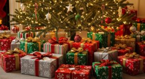 Use beautifully wrapped presents (even empty boxes) as décor. Stack them beneath the tree or place a few in corners for a polished finish.