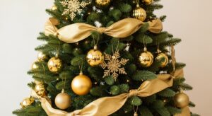 Make your Christmas tree the star of the room. Decorate it with ornaments that reflect your theme — think shimmering glass balls, velvet ribbons, and twinkling fairy lights.