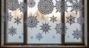 Hang paper or metal snowflakes and stars from the ceiling, windows, or curtain rods for a whimsical winter feel.