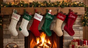 Hang stockings on the mantel or staircase, and personalize them with family names or initials for a sentimental touch.