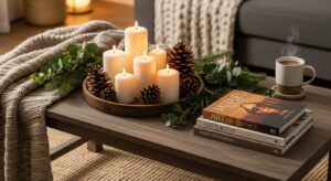 Use scented candles, essential oil diffusers, or simmer pots with cinnamon, pine, and vanilla to make your home smell as cozy as it looks.