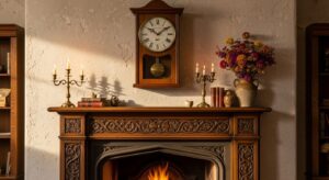 An antique or retro-style wall clock above the fireplace adds character and helps count down to Christmas morning.