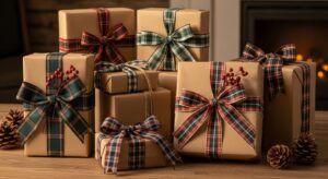 Wrap gifts in brown paper with twine, wax seals, or plaid ribbon for a charming old-fashioned presentation.