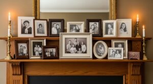 Decorate shelves or your mantel with framed black-and-white family photos for a sentimental, vintage-inspired touch.