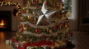 Complete your vintage Christmas tree with a classic star topper — metallic, glass, or glittery — for the perfect nostalgic touch.