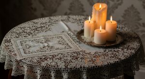 Use lace runners, doilies, or crocheted accents to soften your displays and evoke vintage elegance.