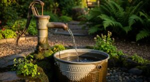15. Rustic Water Pump Fountain
