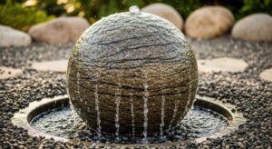 A textured stone sphere slowly rotating or overflowing creates a calming, sculptural statement.