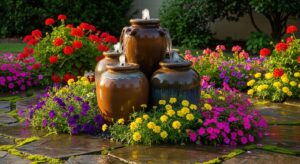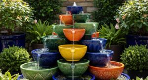 Using stacked garden pots, this DIY-friendly fountain feels artistic and colorful.