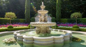 Ornate marble carvings bring luxury and sophistication to large yard spaces.