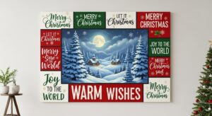 Swap your usual wall décor for Christmas-themed prints, quotes, or framed holiday illustrations.
