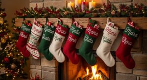 Choose matching or themed stockings and personalize them with names or initials for a heartwarming family touch.