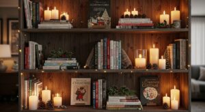 Arrange books, candles, and ornaments on open shelves — mix textures and colors for visual interest.