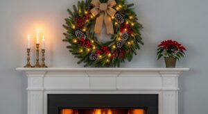 Don’t limit wreaths to the front door — hang one above the mantel or on interior doors for extra cheer.