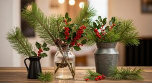 Use pine branches, holly, or mistletoe to bring an earthy, fresh scent and texture into your space.