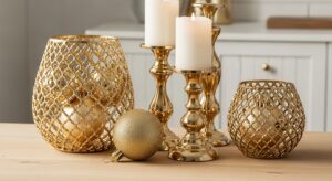 Gold accents — in candleholders, ribbons, or ornaments — elevate your Christmas living room with elegance.