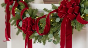 Ribbons are the perfect finishing touch for any garland. Use satin or velvet ribbons in your holiday colors — like deep red, emerald, or gold — and let the bows cascade naturally.