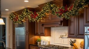 Don’t forget your kitchen! Place a garland above your cabinets or along open shelving. Add fairy lights or faux berries to tie your kitchen decor into the rest of your home.