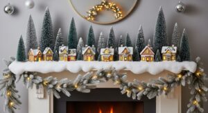 Add mini Christmas trees, snow-covered village houses, and fairy lights for a magical, storybook look that delights kids and adults alike.