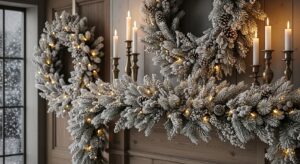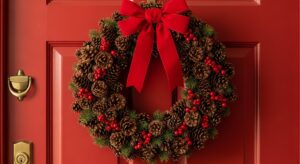 A wreath on the front door is a timeless holiday essential. Go for a traditional evergreen wreath with pinecones and berries, or elevate the look with metallic ornaments and velvet ribbon.