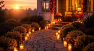 Line your walkway or porch steps with luminaries or LED candles in glass holders. This creates a soft, welcoming glow on chilly winter nights.