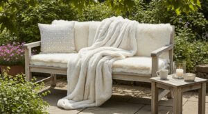 Add a luxurious touch with faux fur throws or cushions on your porch furniture. They provide warmth and texture for a sophisticated winter look.