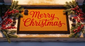 Swap your everyday doormat for one with a cheerful holiday message like “Merry Christmas” or “Joy to the World.” It’s a small detail that adds to the festive mood.