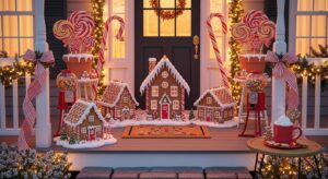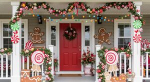 Decorate with gingerbread-shaped cutouts, candy garlands, and twinkling lights for a touch of whimsy.