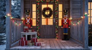 Transform your porch into Santa’s workshop with toy soldier cutouts and mini wrapped presents.