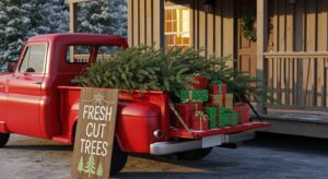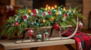 Add antique sleds, weathered signs, and retro ornaments for nostalgic holiday charm.