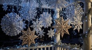 Hang paper or wooden snowflakes from the ceiling or porch railing for an icy, magical atmosphere.