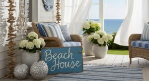 Use seashells, driftwood, and blue ornaments for a beach-inspired take on Christmas.