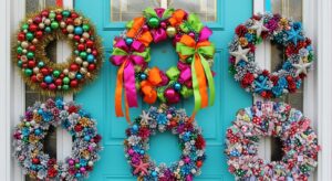 Make your own colorful wreaths with leftover ornaments and ribbons for a personal touch.
