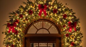 Frame your doorway with a thick, twinkling garland to create a glowing Christmas entry arch.