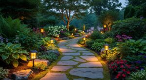 A simple stone or gravel pathway leads guests through your space while adding rustic charm. Line the path with solar lights or plants for a magical, well-defined look.