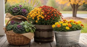 These container choices instantly add character and make your arrangement feel like part of your fall décor, not just a potted plant.