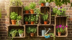 Arrange wooden crates vertically or horizontally as shelves. Fill them with potted plants, herbs, or decorative items. Crates provide a rustic charm while maximizing vertical space.