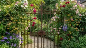 Decorative gates, either metal or wooden, make excellent trellises. Position them upright to support climbing flowers, vines, or vegetables, adding height and elegance to the garden.