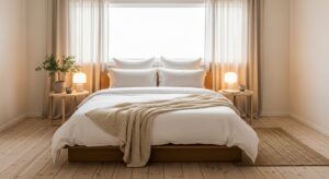 Lighting plays a major role in creating that cozy cottage warmth. Let in as much natural light as possible—use sheer curtains or light linen drapes that allow sunlight to flow freely. For evenings, opt for warm-toned bulbs in lamps or pendant lights with natural materials like wicker, linen, or frosted glass. Candlelight also enhances the soft, organic glow that defines this style.