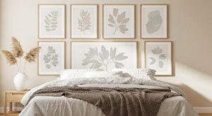 Hang a few framed prints or wall art pieces that reflect your home’s personality. Keep the color palette soothing and the theme inviting.