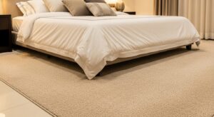 A soft area rug adds warmth and texture underfoot, especially if you have hardwood or tile floors. Choose neutral tones or subtle patterns.