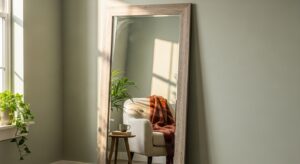 A mirror helps guests get ready easily and makes small rooms appear bigger. Go for a full-length mirror or a stylish wall-mounted one.