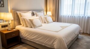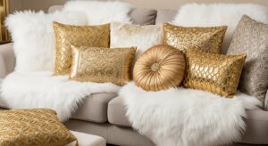 Add warmth and comfort with soft white textures — faux fur throws, chunky knit blankets, and velvet cushions. These cozy touches balance the metallics and make your space inviting.