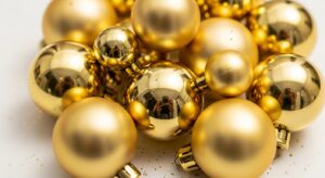 Play with texture by mixing glossy, matte, and glittered gold ornaments. This variation catches the light beautifully and gives your décor a luxurious, designer look without being over the top.