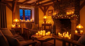 Pro Tip: Avoid harsh white lighting — opt for yellow or amber tones that mimic sunlight and firelight.