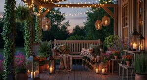Add lanterns or string lights for evening glow.
