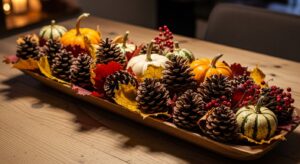 Bringing nature indoors is a hallmark of fall decor. Gather pinecones, dried leaves, acorns, or branches from outside and display them in vases, wreaths, or centerpieces. Wooden accents, ceramic vases, and woven trays all contribute to the earthy aesthetic. You can also decorate with pumpkins, gourds, or seasonal fruits for a touch of organic beauty.