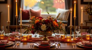 Your dining area is the perfect place to showcase your fall decor creativity. Use a textured table runner, layered plates in warm tones, and a centerpiece made of pumpkins, greenery, or candles. For a modern twist, try gold flatware or amber glassware. This setup makes every meal feel like a festive autumn gathering.